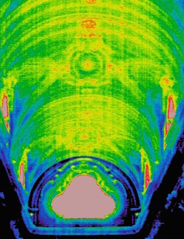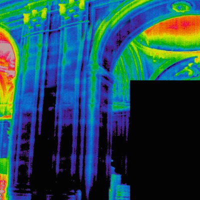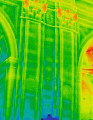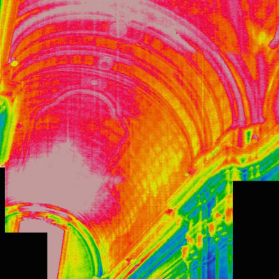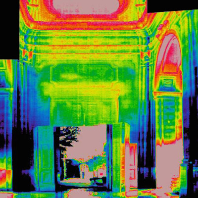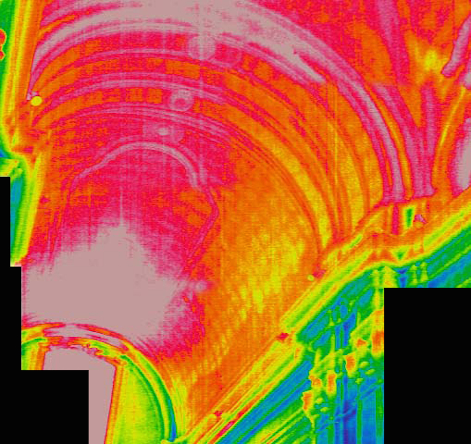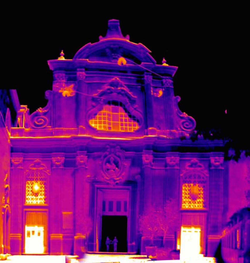 L’indagine termografica dell’interno e dell’esterno è stata finalizzata alla lettura dello strato corticale della muratura, con lo scopo di determinare la tessitura muraria e cercare di fornire elementi utili per guidare le fasi operative dell’intervento di conservazione della fabbrica.
