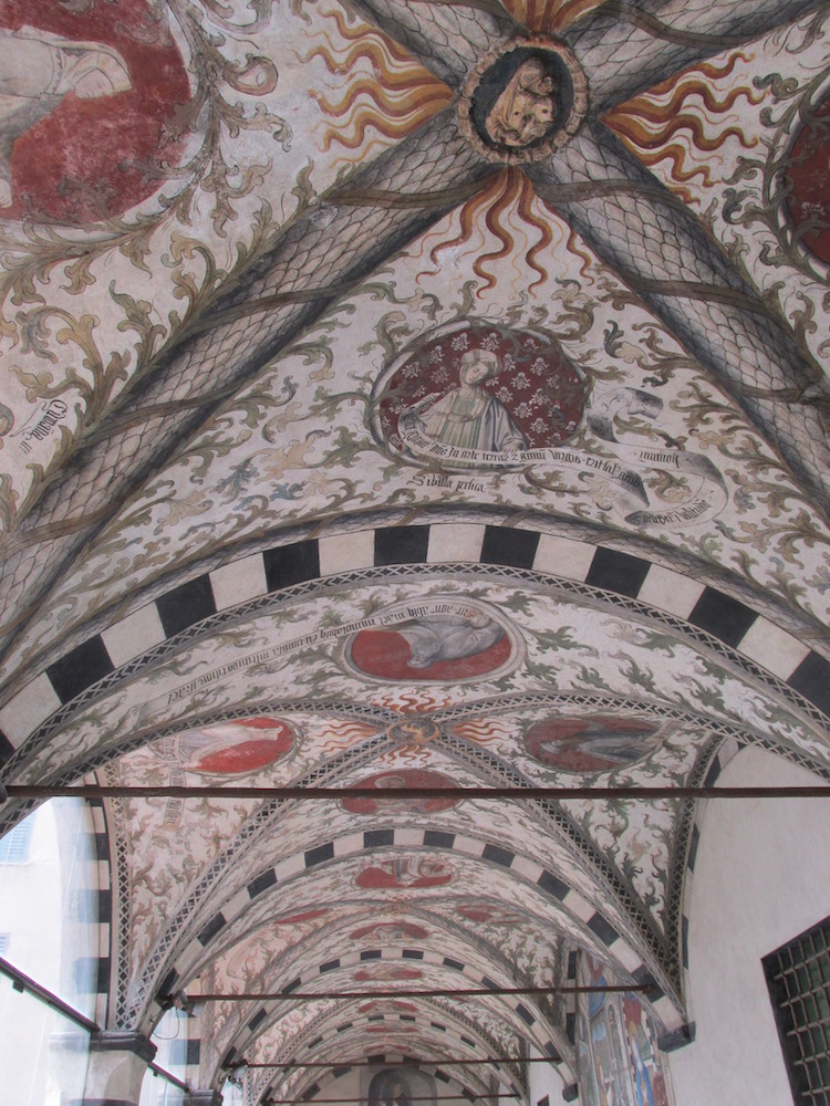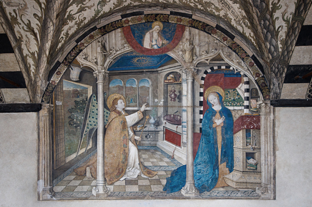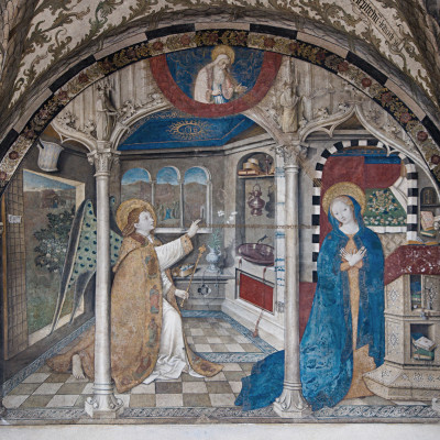 Il complesso conventuale di Santa Maria di Castello, oggi Museo di Arte Sacra, si articola attorno a tre chiostri costruiti dai Domenicani tra il 1445 ed il 1513. Il secondo chiostro – che ospitava la sala capitolare, la biblioteca, la loggia ad uso dei frati, la spezieria ed i parlatori – conserva una ricchissima decorazione ad affresco, straordinario esempio di pittura genovese del Quattrocento. Nella loggia al primo piano, in particolare, si trovano il celebre affresco dell’Annunciazione di Giusto di Ravensburg del 1451 e una volta a crociere dipinta con foglie fiammeggianti e tondi con figure di sibille e profeti.