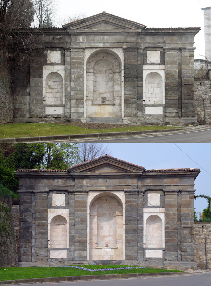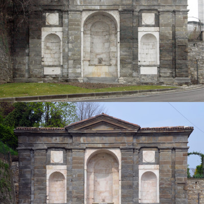 La fontana di Sant’Agostino, voluta dai Rettori veneziani di Bergamo, fu costruita nel 1575 come fondale prospettico all’omonima porta di accesso alla Città Alta e per la sua posizione è tra le più importanti di Bergamo. L’azione di recupero, necessaria a distanza di oltre vent’anni dal precedente restauro, si è rivolta al consolidamento dell’integrità del monumento nel rispetto delle sue caratteristiche architettoniche e stilistiche.