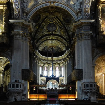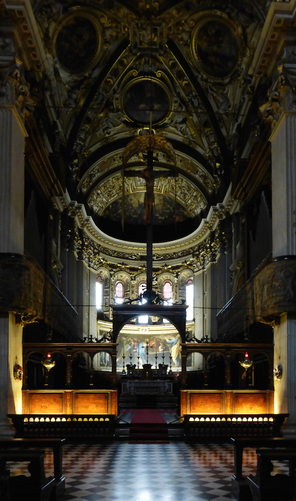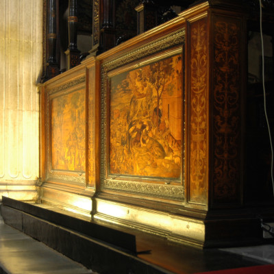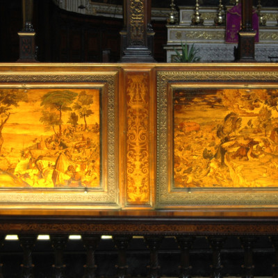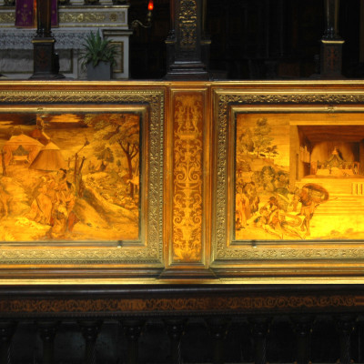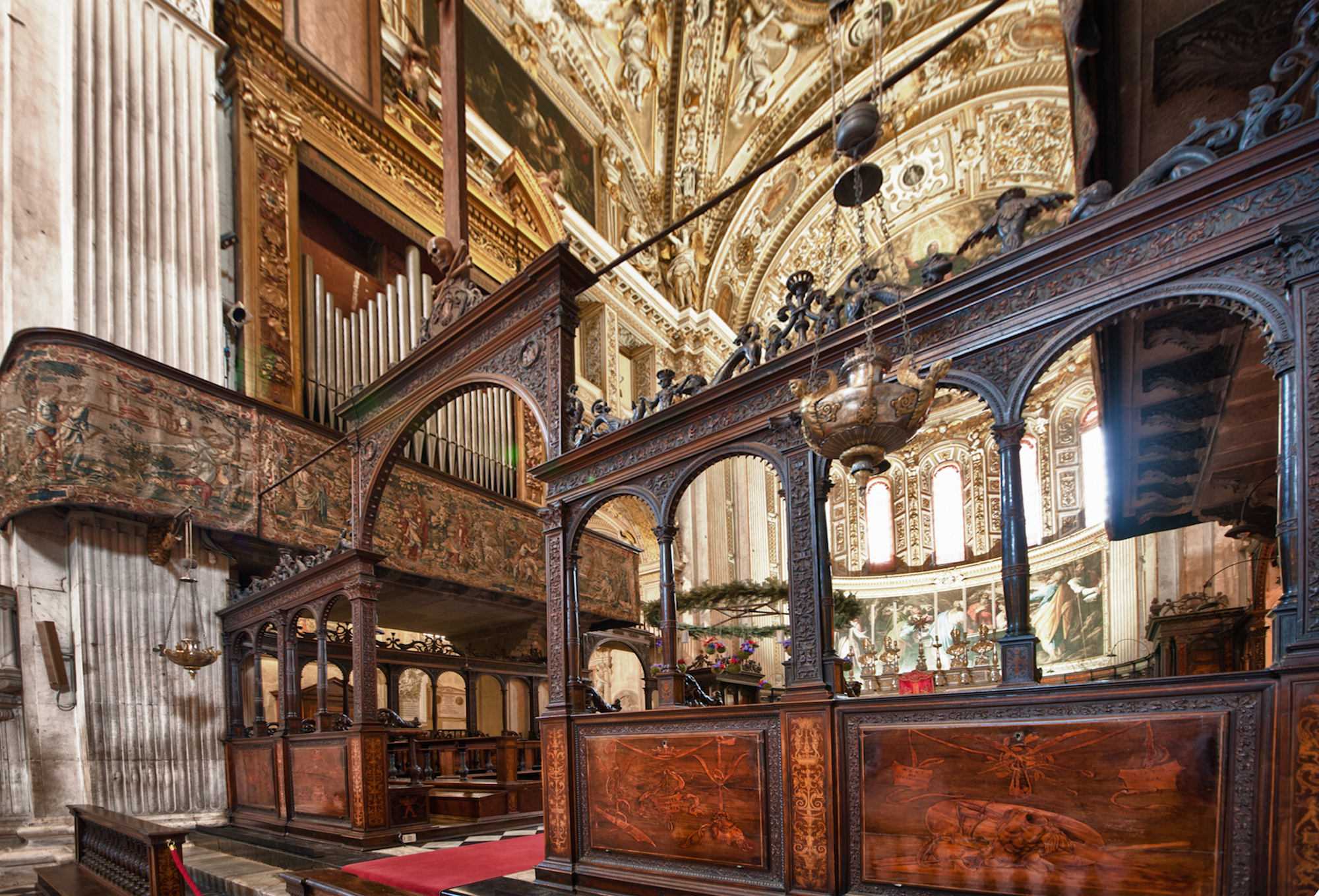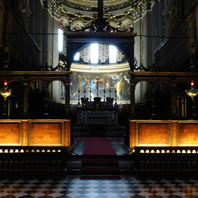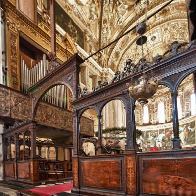Le tarsie del coro della Basilica di Santa Maria Maggiore sono un importante complesso di intarsi lignei, eseguiti tra il 1524 e il 1532 dall’ebanista Giovan Francesco Capoferri su disegno di Lorenzo Lotto.