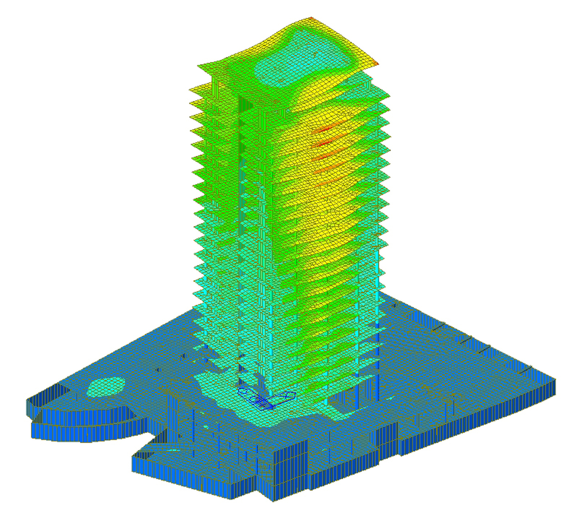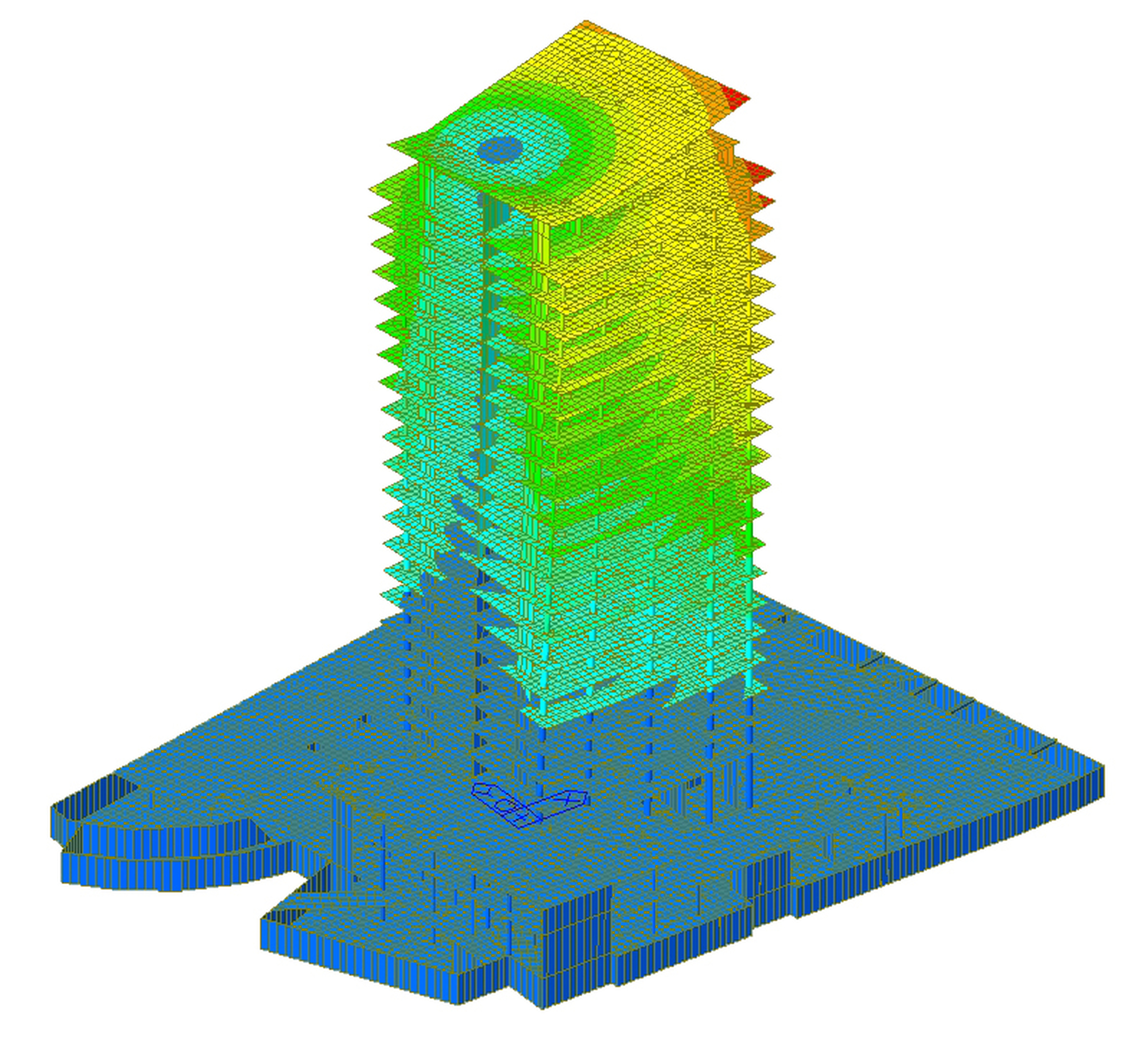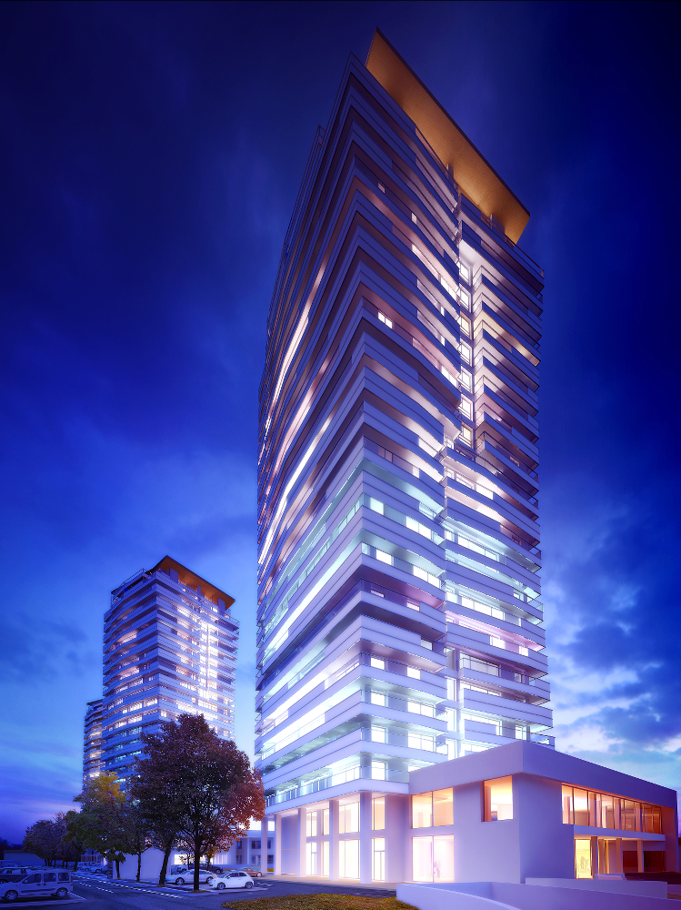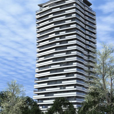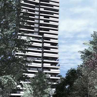 L’elemento che caratterizza il progetto sono i “nastri bianco e vetro” dei parapetti delle terrazze. Questi nastri, infatti, seguendo l’andamento irregolare delle terrazze, disegnano un fabbricato dalla geometria variabile che vuole discostarsi dall’effetto “scatola” che spesso caratterizza gli edifici a torre. L’aspetto scultoreo dell’edificio, inoltre, è ulteriormente accentuato dal gioco di ombre e luci che nasce dal succedersi ritmico delle terrazze.