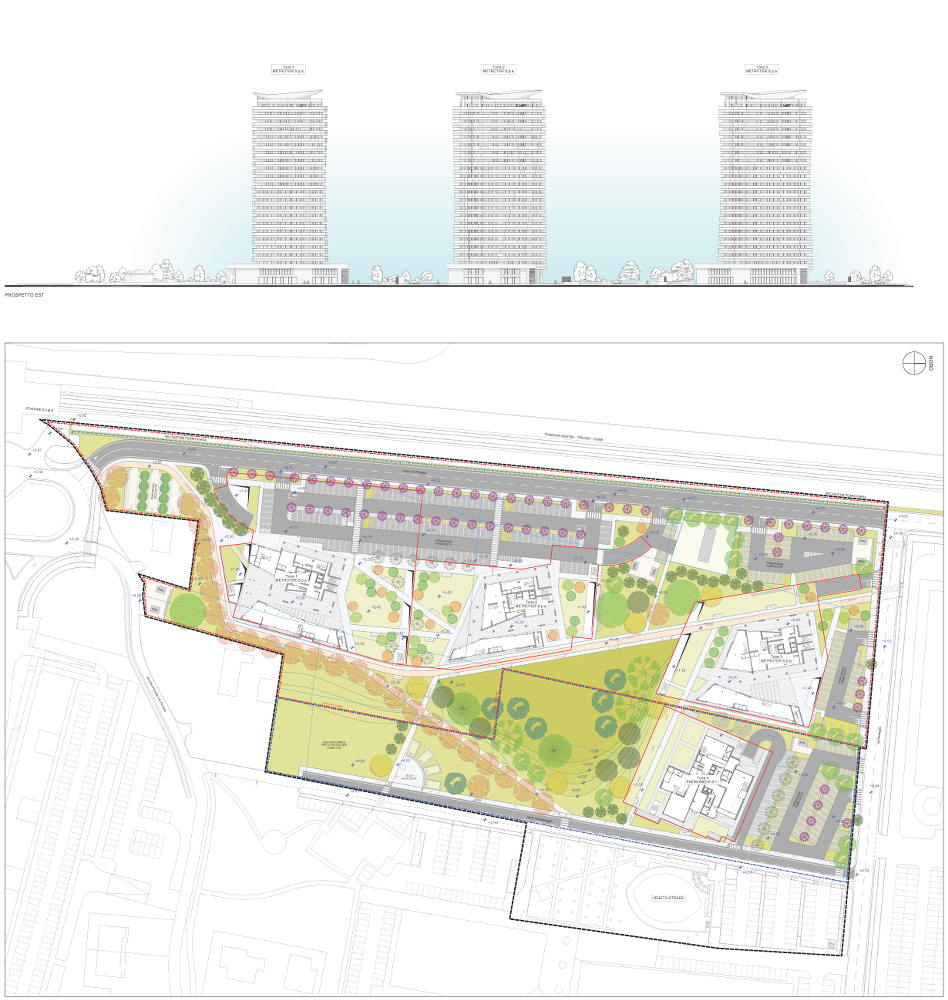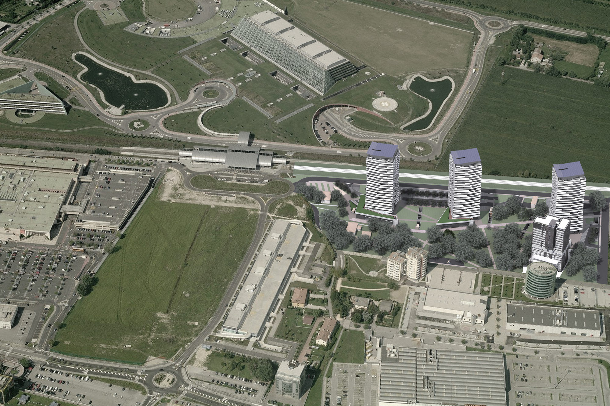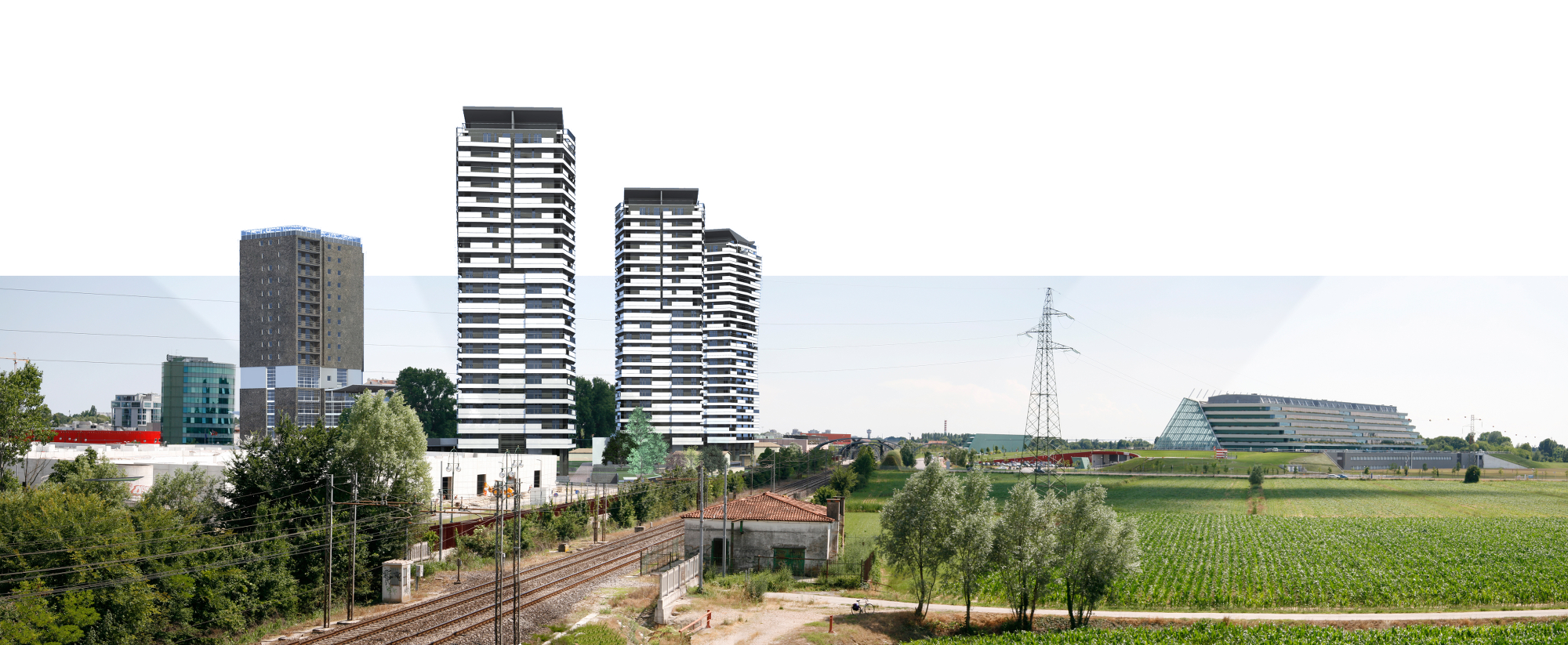 Le dimensioni del progetto hanno permesso di operare una trasformazione a scala urbana che imponeva una riflessione su aspetti sia compositivi che architettonici, ma anche simbolici / iconici. La scelta di realizzare tre edifici a torre, a destinazione mista residenziale-direzionale-commerciale, ha permesso di liberare spazio al suolo per la realizzazione di un parco attrezzato a beneficio della collettività. Inoltre lo “slancio verticale” – ciascuna torre è alta 90 m – consente una maggiore percezione visiva degli edifici dalla rete infrastrutturale limitrofa.